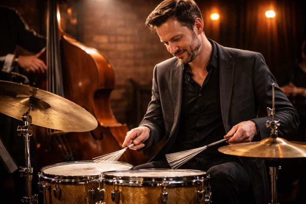 Brushes sind der Standard für Sweeps, weiche Texturen und sehr niedrige Lautstärken. Meinl beschreibt Metall-Wires als knackig und sweep-fähig, Nylon als haltbar und wärmer klingend, Straw als weich und warm. Brushes sind ideal für Jazz, Balladen, Akustik-Arrangements und Sounddesign. Nachteile: Für laute Musik, klare Backbeats oder kräftige Beckenarbeit sind sie oft ungeeignet.