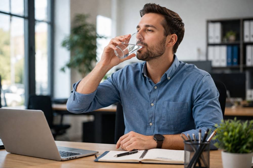 Ein häufiger Grund ist schlicht Vergesslichkeit. Besonders bei konzentrierter Bildschirmarbeit, langen Autofahrten oder Terminen verschwindet Trinken aus dem Bewusstsein.